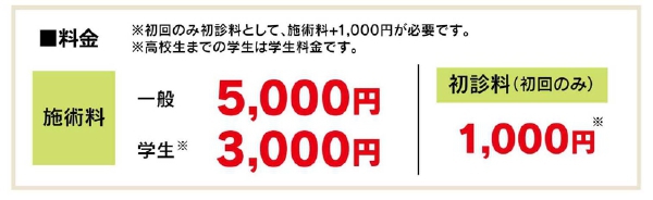 ※初回のみ初診料として、施術料+1,000円が必要です。